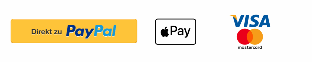 1. Bezahlen Sie schnell & sicher mit PayPal, Apple Pay oder Kreditkarte.